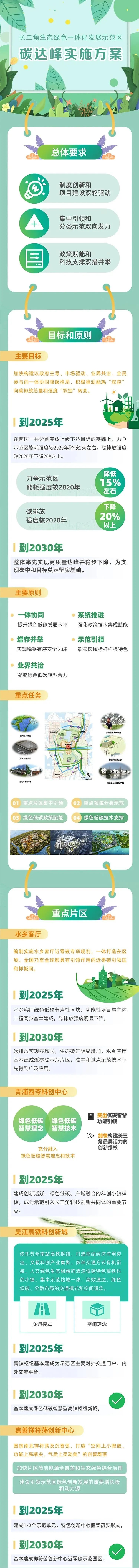 《方案》旨在為探索一體協(xié)同落實(shí)碳達(dá)峰目標(biāo)提供可復(fù)制可推廣的經(jīng)驗(yàn),為落實(shí)長(zhǎng)三角一體化和雙碳國(guó)家戰(zhàn)略提供有力支撐。《方案》明確了總體要求,以“一體協(xié)同,系統(tǒng)推進(jìn),增存并舉,示范引領(lǐng),業(yè)界共治”為主要原則,提出到2025年,在兩區(qū)一縣(上海青浦、江蘇吳江、浙江嘉善)分別完成上級(jí)下達(dá)目標(biāo)的基礎(chǔ)上,力爭(zhēng)示范區(qū)...