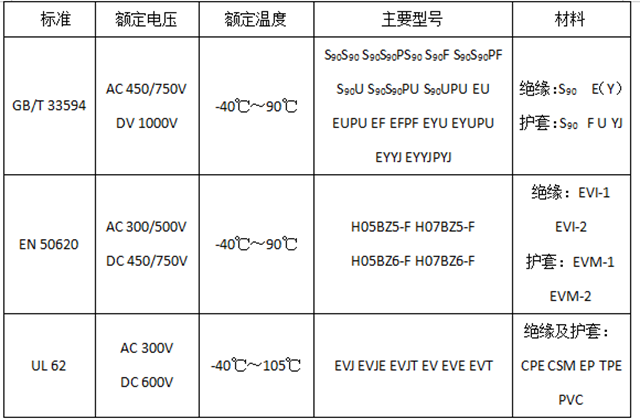 表 1 全球充電樁電纜的主要標(biāo)準(zhǔn)