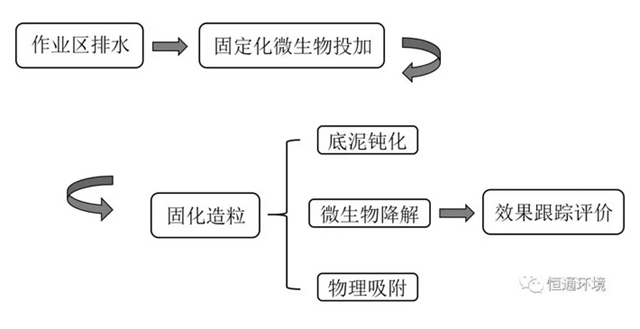 八干渠底泥原位治理,利用底泥造粒鈍化與固定化微生物組合技術(shù)抑制底泥污染物釋放和促進(jìn)污染物降解。該技術(shù)使具有高效降解污染物能力的微生物固定于載體填料上,然后與污染底泥混合并造粒包裹用來(lái)進(jìn)一步降解底泥中污染物,從而減少對(duì)上覆水體的污染。這種固定化微生物載體既可以利用本身所附著的微生物降解污染物,同時(shí)又具有物理吸附和阻隔等功能,使污染物在生物降解與物理吸附的協(xié)同作用下被去除。