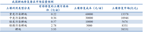 我國土壤污染類型包括農(nóng)業(yè)耕地土壤污染、城市工業(yè)用地土壤污染以及礦區(qū)土壤污染。目前,我國待修復(fù)的污染場地?cái)?shù)量非常之多,保守估計(jì)超過50萬塊。其中,耕地土壤修復(fù)投資需求在3萬億以上,城市土壤修復(fù)投資需求1萬億以上,礦區(qū)土壤修復(fù)投資需求可達(dá)近2萬億。(備注:由于修復(fù)分為輕重緩急,分階段進(jìn)行,而且受到資金的制約,所以預(yù)測的投資需求,和真正會(huì)去修復(fù)的地塊,不是同一個(gè)概念)