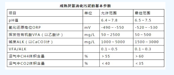 培養(yǎng)結(jié)束后,成熟的污泥呈深灰到黑色,有焦油氣味但無硫化氫氣味,pH值在7.0~7.5之間,污泥容易脫水和干化。對進水的處理效果高,產(chǎn)氣量大,沼氣中甲烷成分高。培養(yǎng)成熟的厭氧消化污泥的基本指標和參數(shù)見下表。