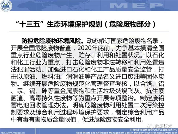 “十三五”生態(tài)環(huán)境保護規(guī)劃任務(危險廢物)