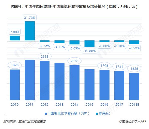 氮氧化物排放量也得到了有效控制。2011年以來,氮氧化物的排放量逐年下滑,2017年,氮氧化物的排放量為1741萬噸,同比上一年度下降3.10%。2017年的排放量或進(jìn)一步降至1626萬噸。