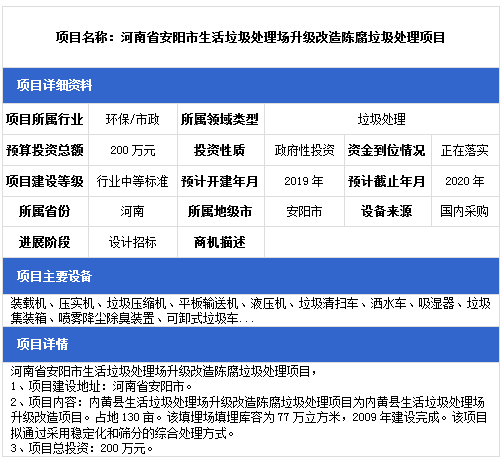 中項網獨家授權北極星固廢網發(fā)布最新垃圾處理項目(2019年1月14日更新),其中包括垃圾填埋場項目、餐廚垃圾處理項目、生活垃圾中轉站建設項目等。具體內容如下:
