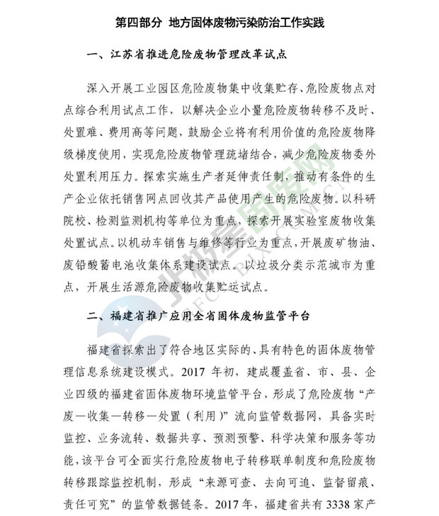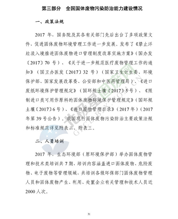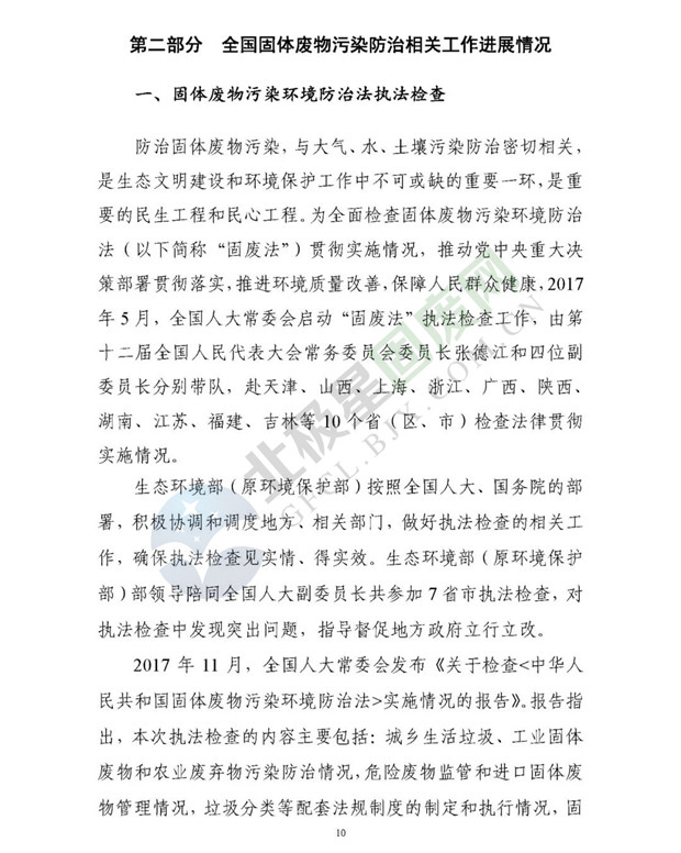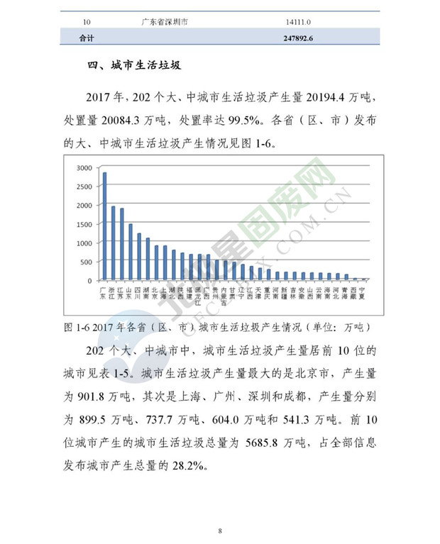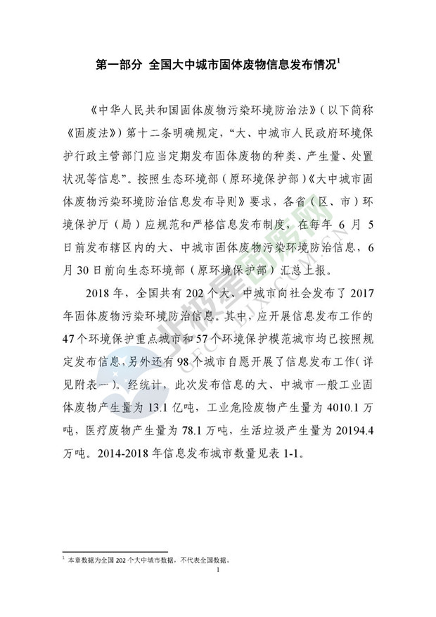 日前生態(tài)環(huán)境部發(fā)布了《2018年全國(guó)大、中城市固體廢物污染環(huán)境防治年報(bào)》,2014 年以來(lái),為促進(jìn)環(huán)境信息公開、增進(jìn)社會(huì)公眾參與, 生態(tài)環(huán)境部(原環(huán)境保護(hù)部)每年定期以年報(bào)形式發(fā)布固體廢物污染環(huán)境防治信息。近日,生態(tài)環(huán)境部發(fā)布《2018年全國(guó)大、中城市固體廢物污染環(huán)境防治年報(bào)》,從大中城市信息發(fā)布、重點(diǎn)工作進(jìn)展、能力建設(shè)以及地方工作實(shí)踐等方面,系統(tǒng)介紹了2017年我國(guó)固體廢物污染環(huán)境防治工作的相關(guān)情況。