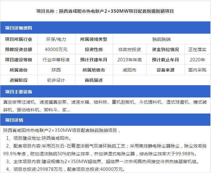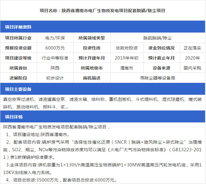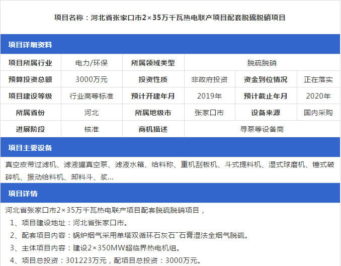 2019年1月份最新的全國(guó)脫硫脫硝工程項(xiàng)目匯總情況,包括SCR脫硝項(xiàng)目、SNCR脫硝項(xiàng)目等,詳情如下: