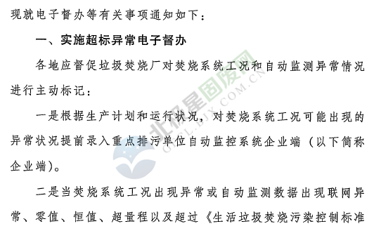 日前生態(tài)環(huán)境部辦公廳下發(fā)了加急通知:《關(guān)于實(shí)施生活垃圾焚燒發(fā)電廠煙氣排放自動(dòng)監(jiān)控電子督辦等有關(guān)事項(xiàng)的通知》,通知提到,即日起(發(fā)文之日起)生態(tài)環(huán)境部將對(duì)生活垃圾焚燒發(fā)電廠實(shí)施超標(biāo)異常電子督辦。各地應(yīng)督促垃圾焚燒廠對(duì)焚燒系統(tǒng)公開和自動(dòng)監(jiān)測(cè)異常情況進(jìn)行主動(dòng)標(biāo)記。針對(duì)突出問題進(jìn)行重點(diǎn)督辦,對(duì)2018年11月自動(dòng)監(jiān)測(cè)日均值超標(biāo)天數(shù)占比大于10%的垃圾焚燒發(fā)電廠,請(qǐng)督促所在地人民政府重點(diǎn)督辦,組織垃圾焚燒廠排查超標(biāo)原因、制定并落實(shí)整改措施。