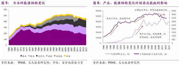 能源結(jié)構(gòu)對(duì)大氣污染關(guān)鍵性指標(biāo)和綠色發(fā)展方向的判斷很關(guān)鍵,日本在工業(yè)化階段能源需求快速增加,也曾經(jīng)面臨酸雨、霧霾等問題,并與之進(jìn)行了長(zhǎng)期斗爭(zhēng),隨著治污設(shè)備的增加以及產(chǎn)業(yè)的轉(zhuǎn)型,日本的大氣環(huán)境有了很大的改善。當(dāng)前,大氣治理的重心也逐步從煙氣治理轉(zhuǎn)到汽車尾氣治理以及發(fā)展新能源汽車方面。