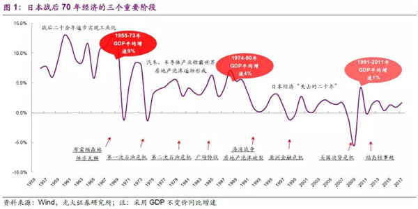 日本在“二戰(zhàn)”后的70多年時(shí)間里,取得了舉世矚目的經(jīng)濟(jì)騰飛,在亞洲國(guó)家中,率先進(jìn)入發(fā)達(dá)國(guó)家之列,也完成了工業(yè)化、城鎮(zhèn)化的進(jìn)程;在這期間,日本也經(jīng)歷了較完整的經(jīng)濟(jì)周期及產(chǎn)業(yè)、能源結(jié)構(gòu)轉(zhuǎn)型。環(huán)保產(chǎn)業(yè)既是工業(yè)、市政發(fā)展的重要衍生需求,也是約束宏觀經(jīng)濟(jì)的資源要素。本篇報(bào)告中,我們將透過日本的經(jīng)濟(jì)周期,詳細(xì)分析日本在發(fā)展中所面對(duì)的環(huán)境污染問題、環(huán)保政策的歷程以及環(huán)保市場(chǎng)的演變。