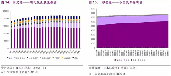 從大氣污染排放總量上來看,日本20世紀(jì)70-80年代二氧化硫排放總量快速下降,這與期間法律法規(guī)的完善,煙氣脫硫力度增加有很大關(guān)系,而且治理效果很明顯,說明一般固定排放源安裝脫硫設(shè)施便可以達(dá)到較好的效果。