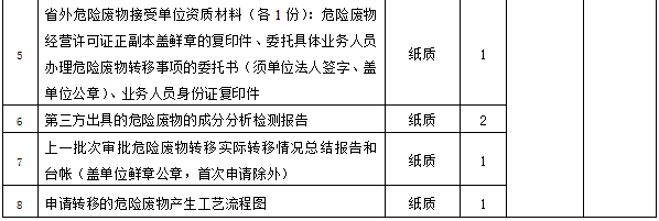 (一)危險(xiǎn)廢物轉(zhuǎn)移跨省移出申請(qǐng)材料目錄