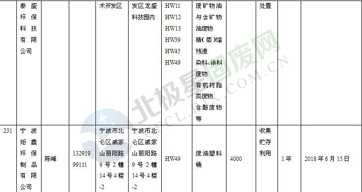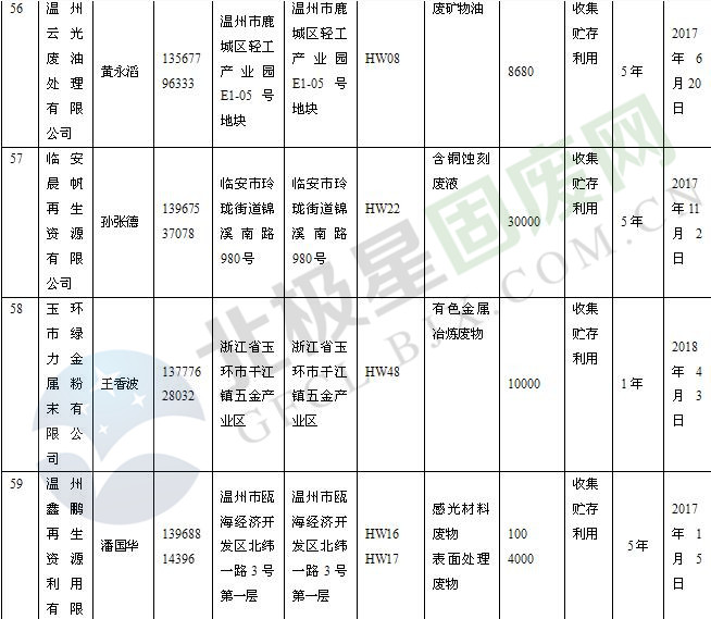 本文整理了浙江省截止至2019.1.22的危險(xiǎn)廢物經(jīng)營(yíng)單位,詳情如下: