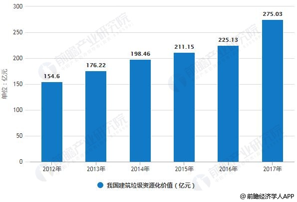 2012-2017年我國建筑垃圾資源化利用行業(yè)市場規(guī)模統(tǒng)計情況