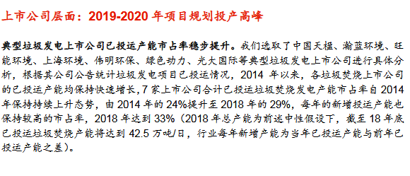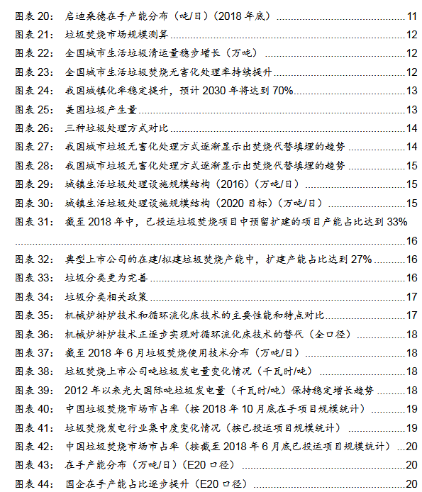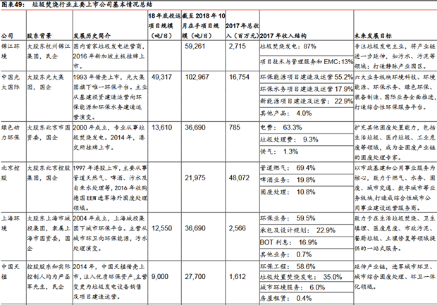 競爭格局:集中度較高,國企競爭力增強(qiáng)根據(jù)2018年10月的垃圾焚燒項(xiàng)目在手規(guī)模排序,目前垃圾焚燒行業(yè)主要的參與者包括:1)國企:光大國際、中國環(huán)境保護(hù)集團(tuán)、綠色動(dòng)力環(huán)保、皖能環(huán)保、康恒環(huán)境、北京控股、重慶三峰、上海環(huán)境、啟迪桑德、廣州環(huán)保、瀚藍(lán)環(huán)境等;2)民企:錦江環(huán)境、盛運(yùn)環(huán)保、中國