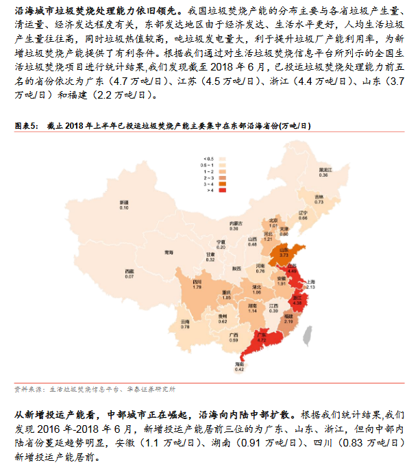 瀚藍(lán)環(huán)境的在手產(chǎn)能主要分布在福建省和廣東省,但在中部地區(qū)也已有一定規(guī)模的已投運(yùn)和在建/籌建項(xiàng)目;啟迪桑德的垃圾焚燒產(chǎn)能所覆蓋的省份數(shù)量僅次于光大國際,除了在山東省的5800噸/日的產(chǎn)能外,啟迪桑德目前大規(guī)模布局中西部和東北地區(qū)。
