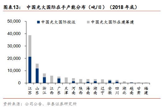 產(chǎn)能加速釋放:17年城市新增4.2萬噸/日(2012-2016年均新增3.2萬噸/日);17縣城投運(yùn)速度提速,我們估計(jì)17新增3.2萬噸/日(十二五年均新增0.4萬噸/日)。按照選取典型上市公司(18年已投運(yùn)產(chǎn)能市占率29%)投產(chǎn)規(guī)劃,18-20年累計(jì)投運(yùn)增速24%/24%/33% vs 按照十三五規(guī)劃測算18-20年累計(jì)投運(yùn)產(chǎn)能增速23%/19%/16%,上市公司投產(chǎn)增速高于行業(yè)增速,表明1)行業(yè)增速可能超預(yù)期或 ;2)上市公司已投運(yùn)市占率將提升。分區(qū)域:山東/上海/寧夏等省市提前完成十三五目標(biāo),廣東/北京/安徽/江蘇等19-20年仍具較大空間,中西部新增投運(yùn)崛起,東部部分地區(qū)仍有空間。