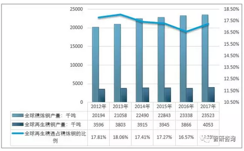 原標(biāo)題:全球銅資源概況及廢銅回收市場分析:2017年再生銅產(chǎn)量超過400萬噸(金屬量)【圖】