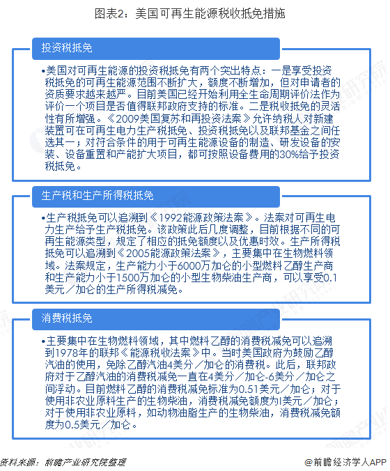 激勵(lì)類政策中稅收抵免是聯(lián)邦政府促進(jìn)可再生能源發(fā)展的最主要的經(jīng)濟(jì)措施。聯(lián)邦政府會(huì)根據(jù)可再生能源發(fā)展的實(shí)際情況,對稅收抵免的覆蓋范圍、抵免額度不斷予以調(diào)整。