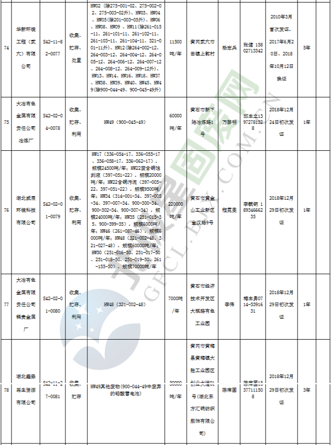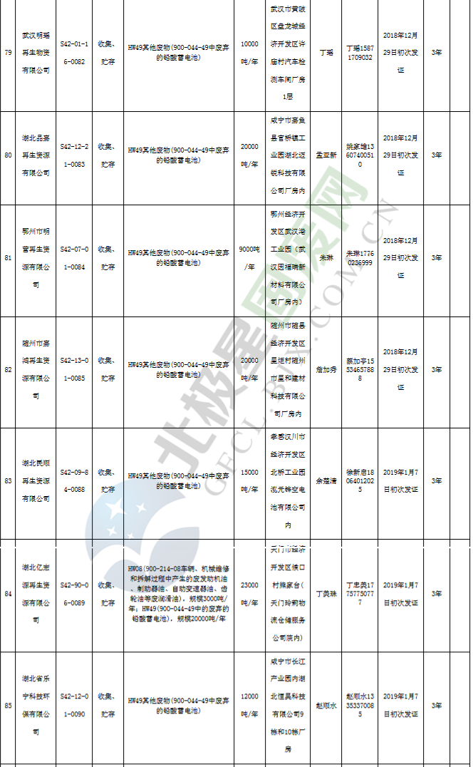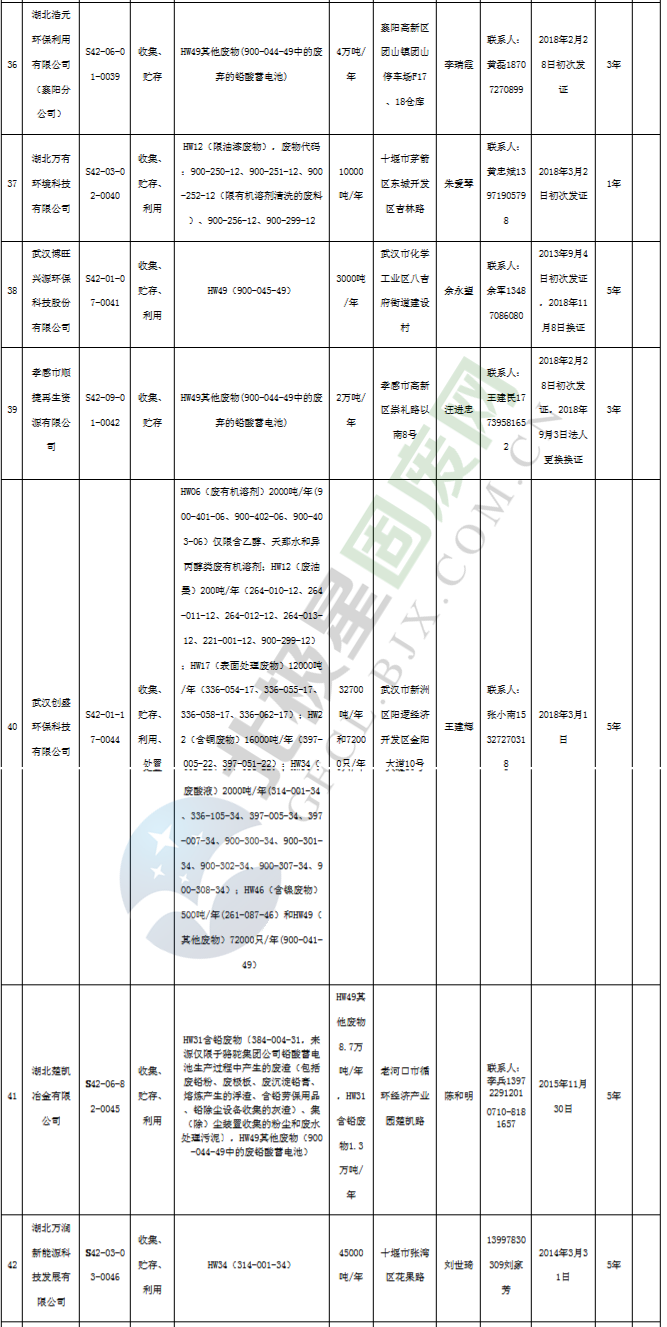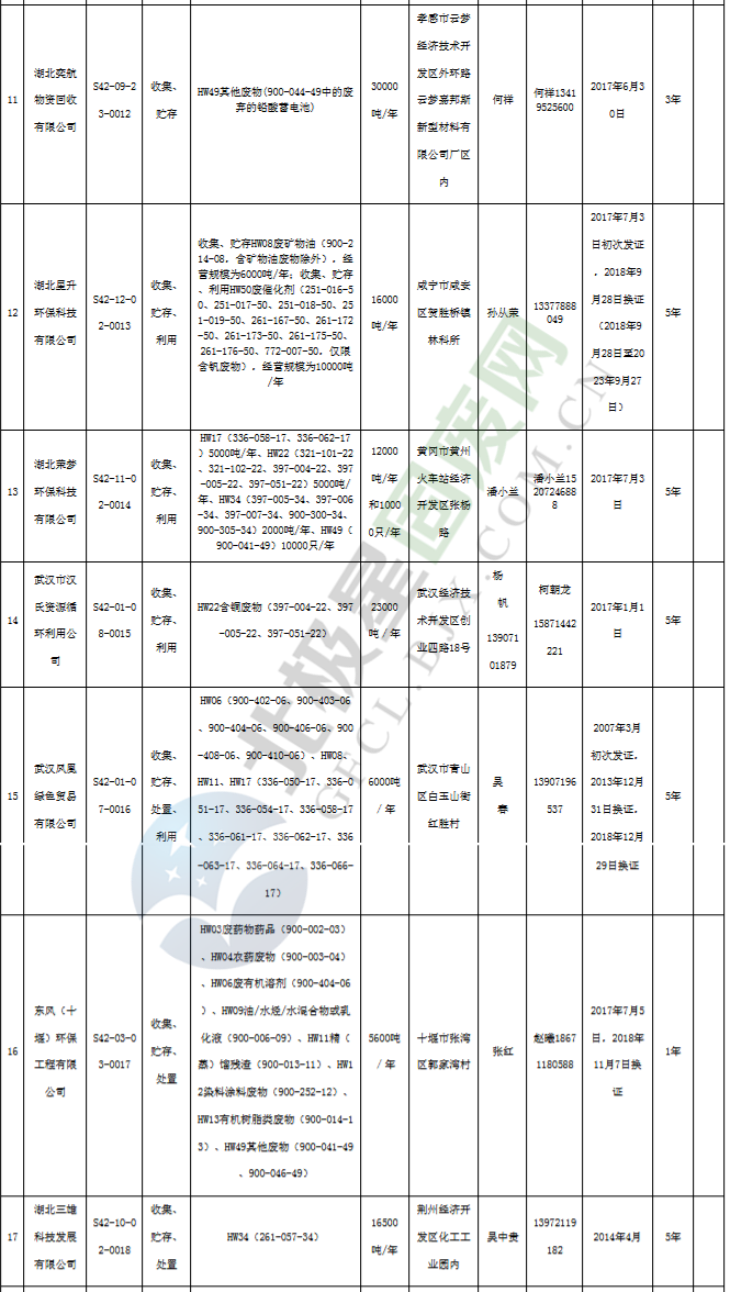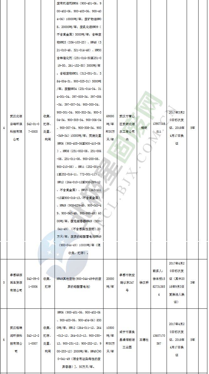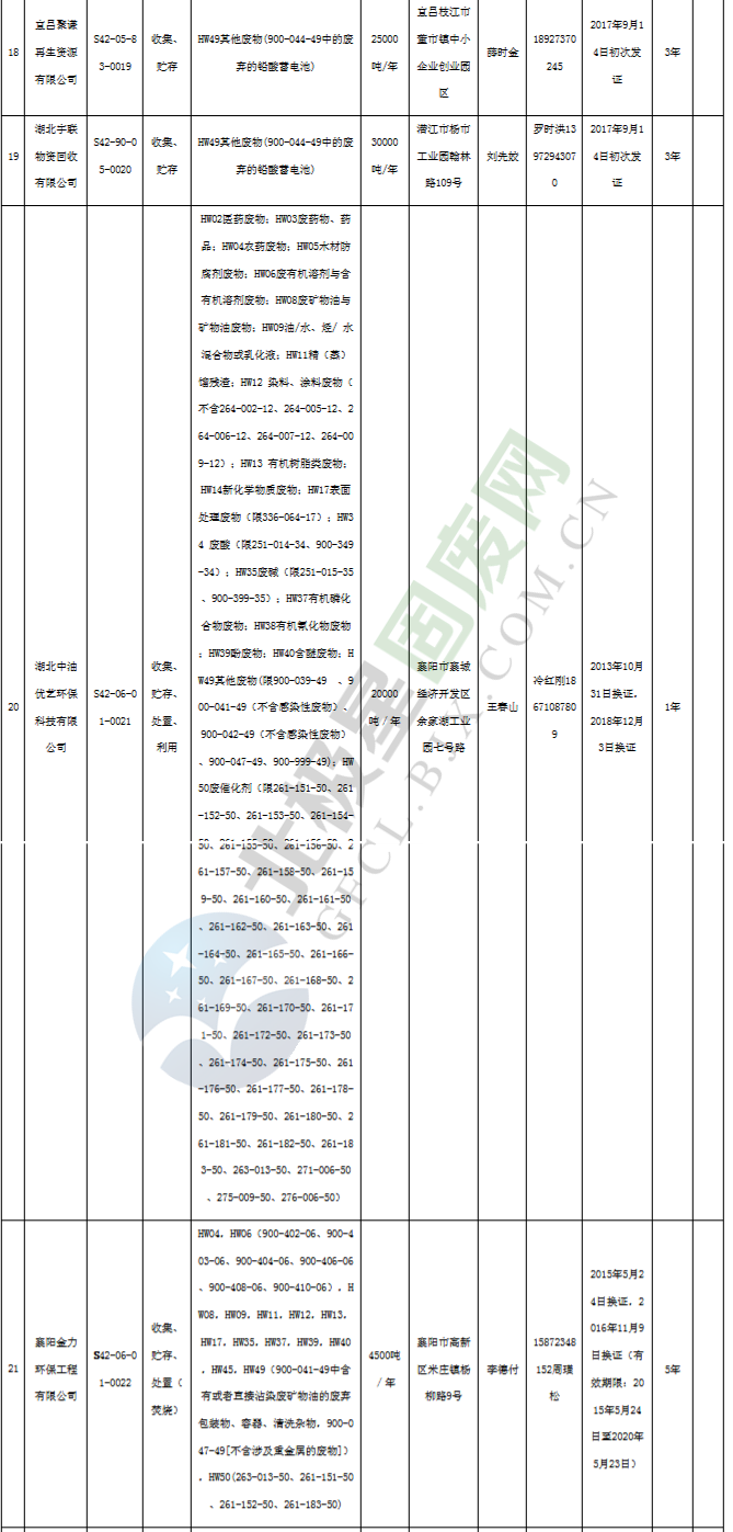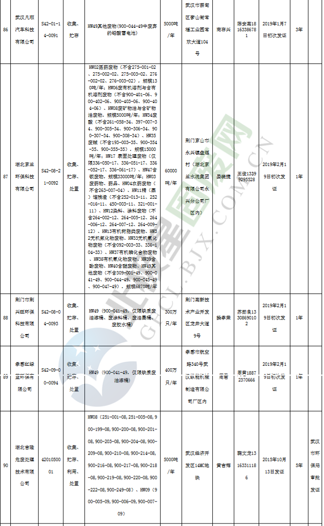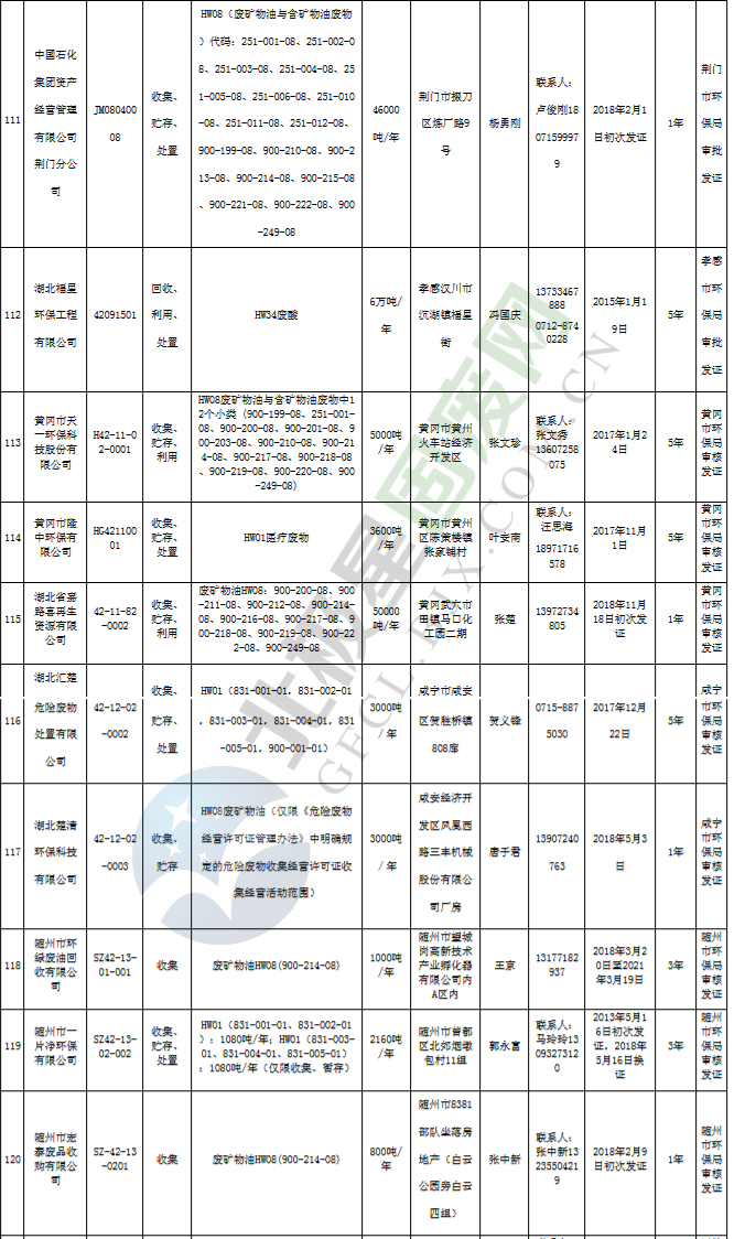 原標(biāo)題:《湖北省危險廢物經(jīng)營許可證》單位名錄(截至2019年2月19日,共125家)