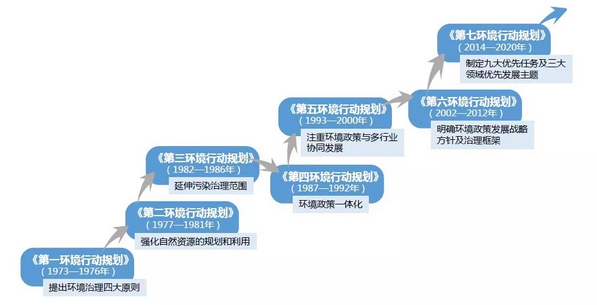 應(yīng)巴黎會議要求,歐共體委員會在1973年推出了歐共體第一個環(huán)境行動規(guī)劃(1973-1976),規(guī)定了5年內(nèi)歐共體環(huán)境政策的目標(biāo)、內(nèi)容,并對環(huán)境政策內(nèi)容進行了具體闡釋。截止目前,歐盟已經(jīng)通過了7份環(huán)境行動計劃,對歐盟環(huán)境政策的完善、共同體內(nèi)的環(huán)境保護水平的提高有重大意義。