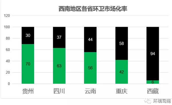 二、西南地區(qū)各省區(qū)環(huán)衛(wèi)市場化率