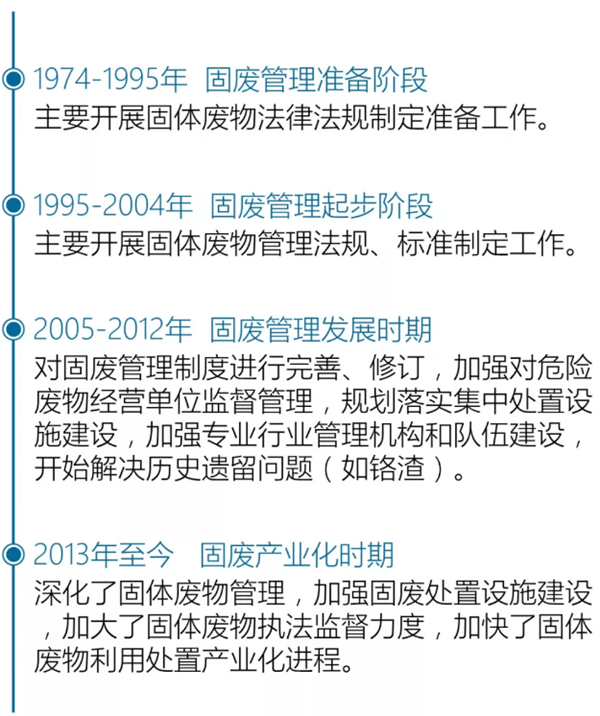 當(dāng)前國內(nèi)部分地區(qū)在城市規(guī)劃、產(chǎn)業(yè)布局、基礎(chǔ)設(shè)施建設(shè)方面,對(duì)于固體廢物減量、回收、利用與處置問題重視不夠、考慮不足,嚴(yán)重影響城市經(jīng)濟(jì)社會(huì)可持續(xù)發(fā)展[3]。 “無廢城市”建設(shè)的提出,有利于從城市整體層面繼續(xù)深化固廢管理制度改革,提升固體廢物綜合管理水平。自建國以來,我國固體廢物管理發(fā)展歷程主要分為以下四個(gè)時(shí)期[4]: