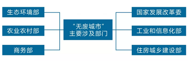 由于“無廢城市”建設(shè)試點(diǎn)涉及的技術(shù)性強(qiáng)、領(lǐng)域多、范圍廣,因此政府應(yīng)是“無廢城市”建設(shè)重要的責(zé)任主體,應(yīng)當(dāng)強(qiáng)化頂層設(shè)計(jì)引領(lǐng),發(fā)揮政府宏觀指導(dǎo)作用。下圖列示了建設(shè)“無廢城市”涉及的主要政府職能部門。