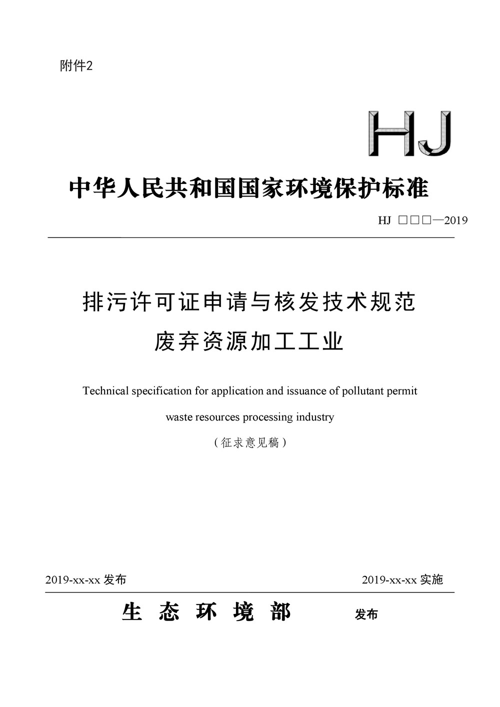 2.排污許可證申請(qǐng)與核發(fā)技術(shù)規(guī)范 廢棄資源加工工業(yè)(征求意見稿)