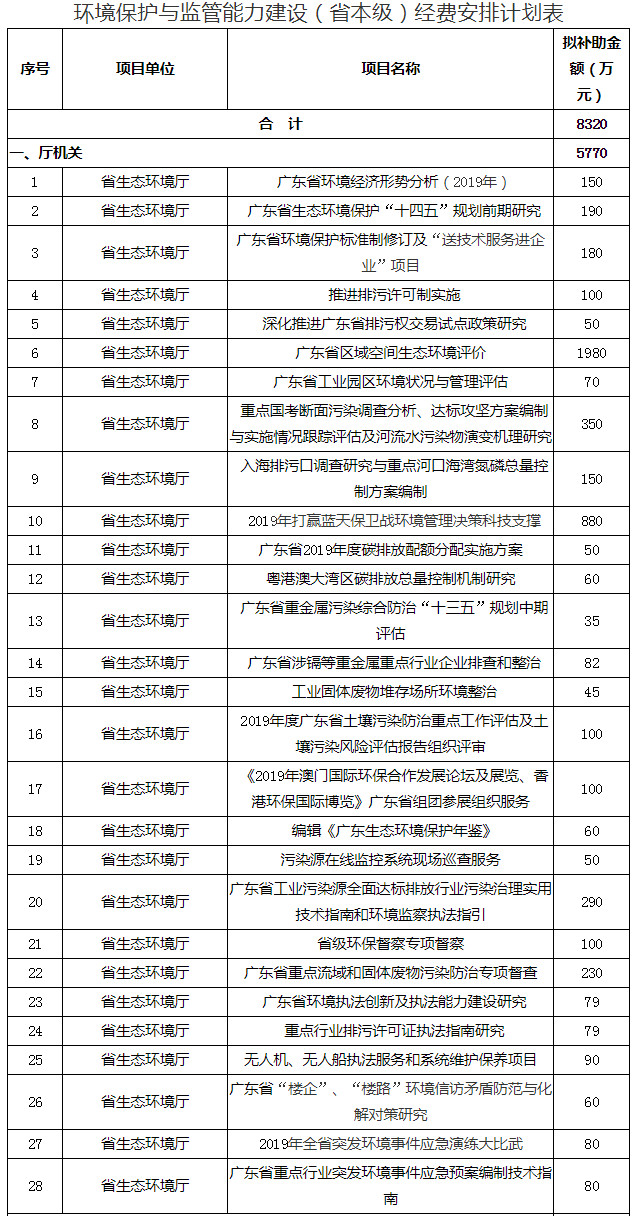 近日,廣東省生態(tài)環(huán)境廳發(fā)布了廣東省生態(tài)環(huán)境廳辦公室關(guān)于2019年打好污染防治攻堅(jiān)戰(zhàn)專項(xiàng)資金安排計(jì)劃的公示,全文如下: