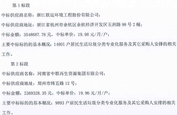 原標(biāo)題:鄭州市金水區(qū)生活垃圾分類(lèi)項(xiàng)目結(jié)果發(fā)布,聯(lián)運(yùn)環(huán)境攬獲包一