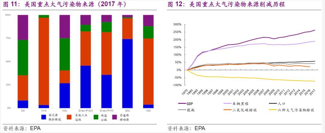 美國新車、卡車和非公路發(fā)動機使用最先進的排放控制技術。EPA要求,美國2030年與1970年相比,新車、SUV、皮卡、新型重型卡車和公共汽車對普通污染物的清潔度需高出99%;新的商業(yè)海洋船舶(非遠洋航行)對顆粒物排放的清潔度需高出90%。因此,在車輛制造領域,清潔排放設備的制造、新能源汽車方面依然有較強的需求。