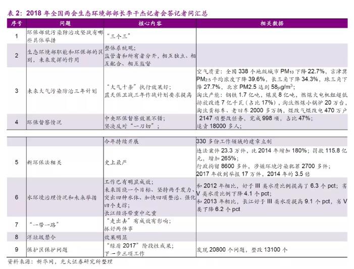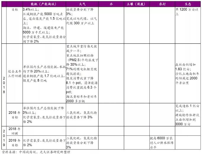回顧今年的政府工作報告,除了在歷年重點關注的大氣污染治理方面,新加入了鋼鐵行業(yè)超低排放改造、汾渭平原等治理的重點工作外,我們認為有下列內(nèi)容值得重點關注: