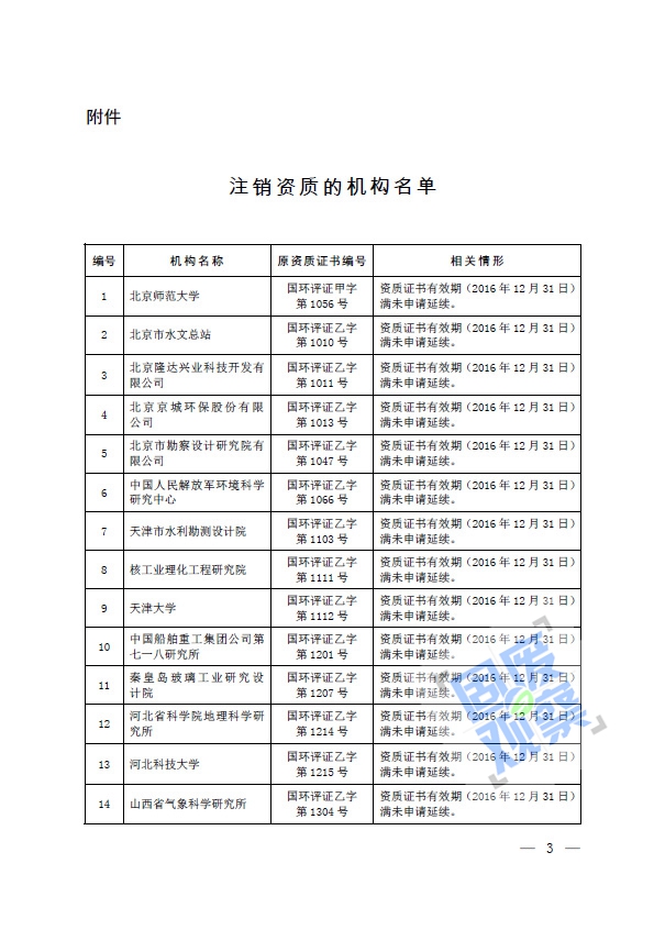 關(guān)于注銷69家機(jī)構(gòu)建設(shè)項(xiàng)目環(huán)境影響評(píng)價(jià)資質(zhì)的公告(公告 2017年 第7號(hào))