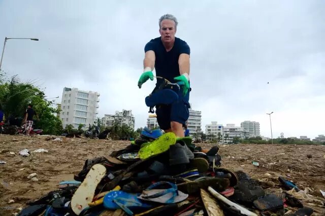 33歲的律師阿芙·沙(Afroz Shah)是這場活動的發(fā)起人之一。這場已經(jīng)持續(xù)了44周的活動,是歷史上最大規(guī)模的海灘垃圾清理運(yùn)動。阿芙邀請我來孟買,加入到志愿者隊伍中,目前我們有300名志愿者,他們每周末會花8小時解決海灘的垃圾問題。