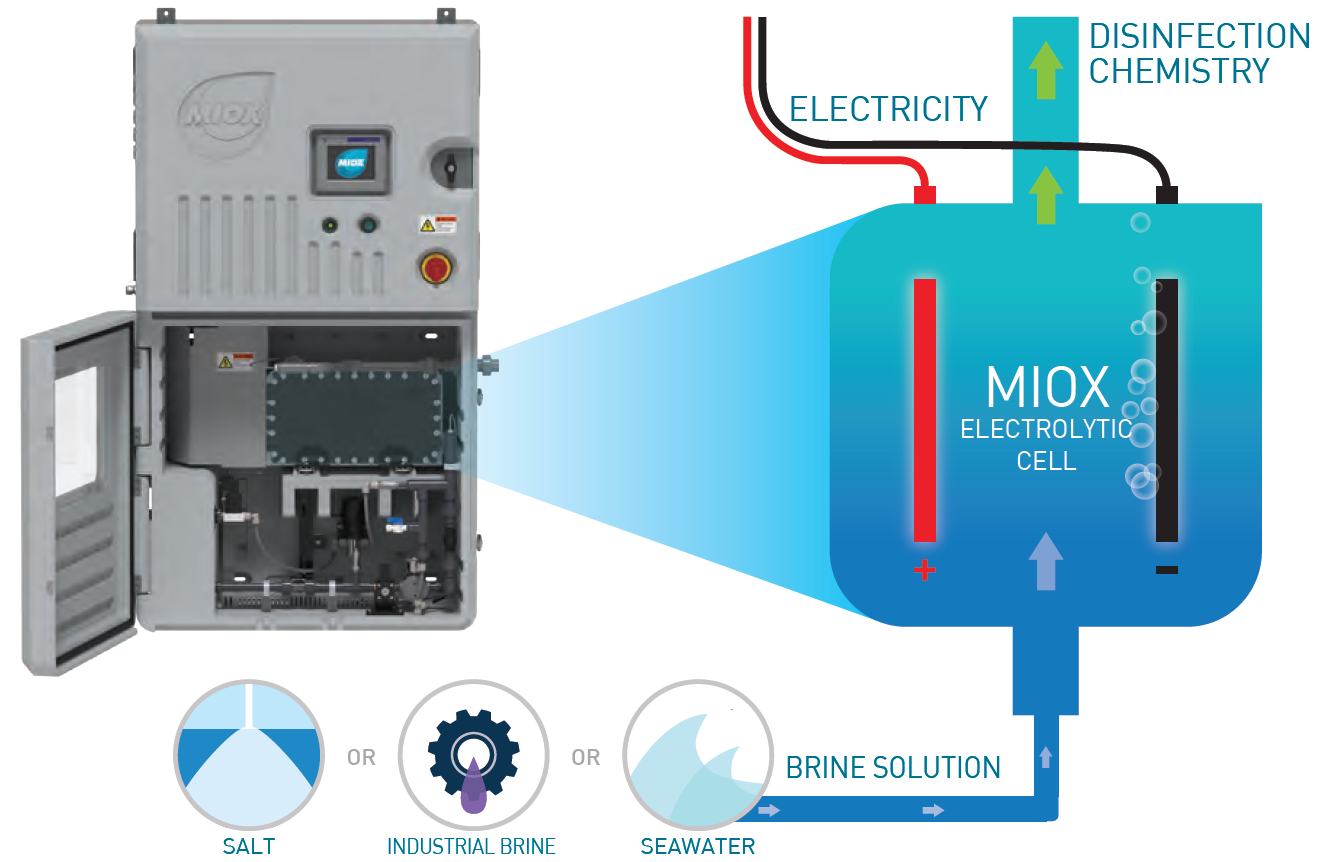 迪諾拉MIOX技術(shù)能現(xiàn)場(chǎng)制備混合氧化物溶液,并針對(duì)更具有挑戰(zhàn)性的應(yīng)用進(jìn)行了優(yōu)化。這種混合氧化物溶液具有次氯酸鈉的所有氧化能力,同時(shí)具有過(guò)氧化氫的額外處理優(yōu)勢(shì),包括穿透去除生物膜、有害消毒副產(chǎn)品的減少,改善氣味以及水的澄清度。此外,MIOX所具備的自清洗等獨(dú)特功能,能幫助客戶通過(guò)更低的加藥量保持更穩(wěn)定的控制和余氯濃度。