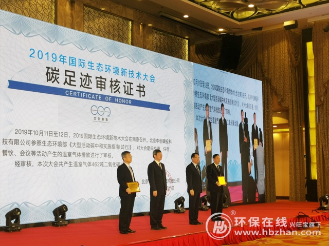 圖為2019國(guó)際生態(tài)環(huán)境新技術(shù)大會(huì) 中創(chuàng)碳投榮獲證書(shū)