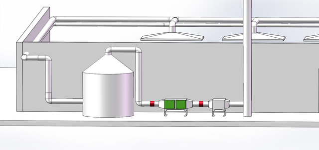 針對這種工況,草木綠設(shè)計的凈化方案是,淬火爐、回火爐廢氣在收集后,經(jīng)噴淋塔洗滌,再通過草木綠自主研發(fā)設(shè)計的雙極靜電式油霧凈化器進(jìn)行集中過濾,最后經(jīng)煙囪達(dá)標(biāo)排放。考慮到熱處理工序產(chǎn)生的廢氣帶有火苗,所以,草木綠設(shè)計加裝了防火罩、防火閥等防火措施。廢氣先經(jīng)噴淋塔洗滌,也能起到防火作用。