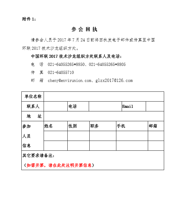 本次技術(shù)沙龍收取會議費(fèi):800元/人,中國環(huán)聯(lián)會員企業(yè)每家可免費(fèi)2人參加。