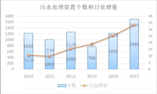 2010-2015進行生活污水處理的鄉(xiāng)的統(tǒng)計情況圖