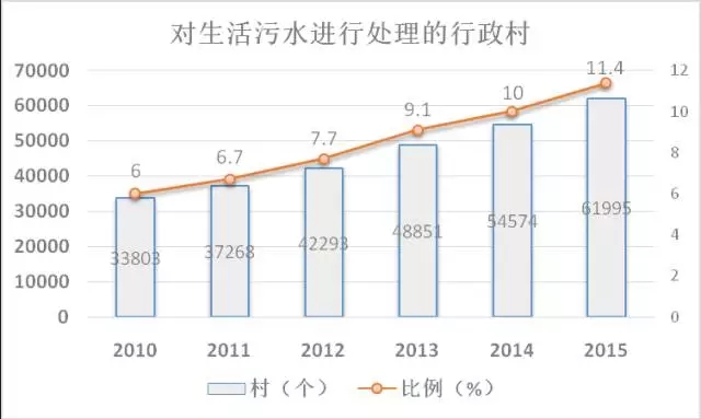 至2015年,全國仍有近90%的行政村未進行污水處理設(shè)施建設(shè),市場空間極大!