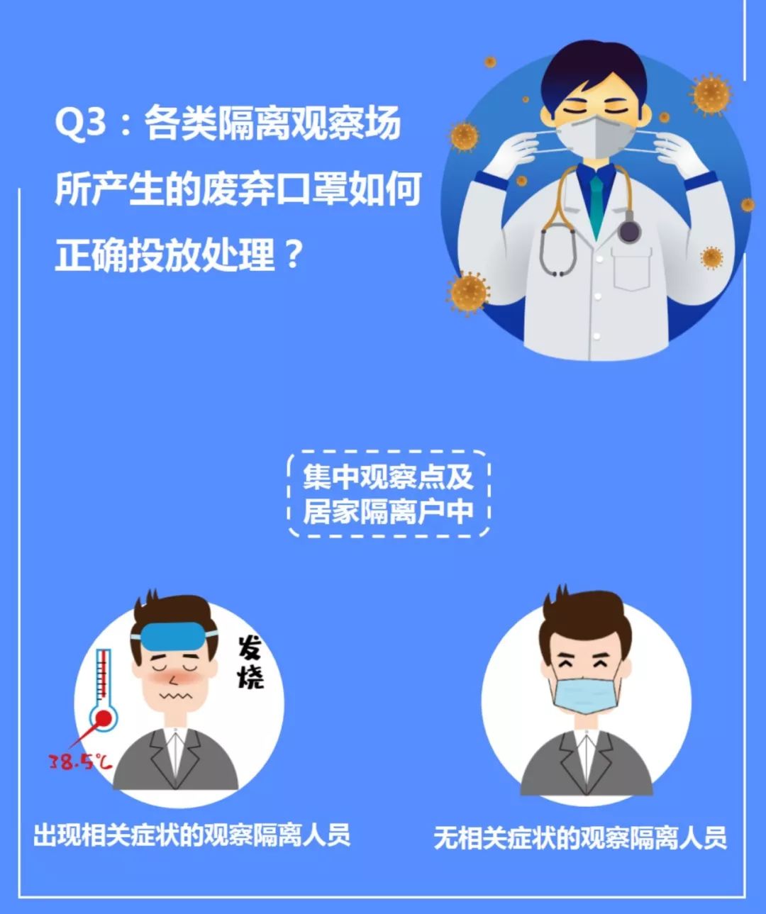各居家隔離點(戶)、集中觀察點產(chǎn)生的廢棄口罩,應嚴格按照上海市防控新型冠狀病毒感染肺炎疫情重點人員集中隔離觀察場所技術(shù)工作規(guī)范要求,由隔離牽頭部門負責指導屬地部門設(shè)立臨時存放點,與日常產(chǎn)生的生活垃圾予以專門存放。
