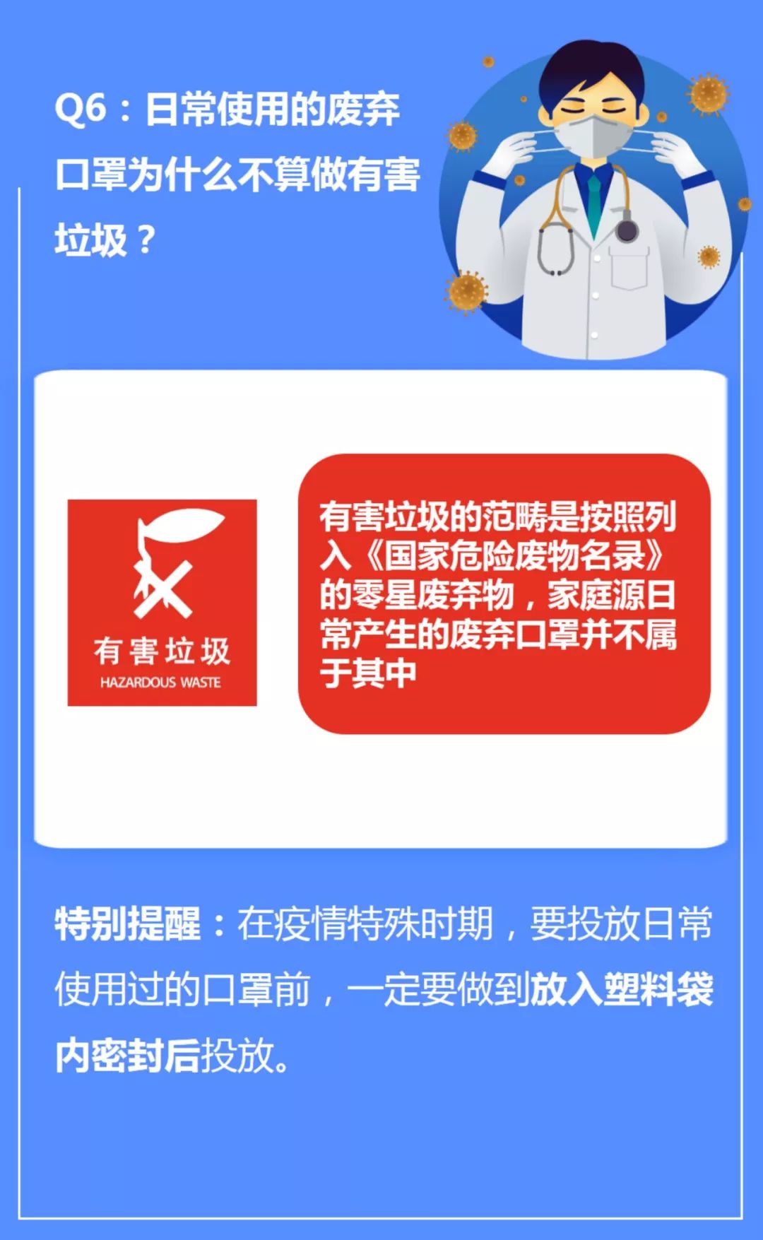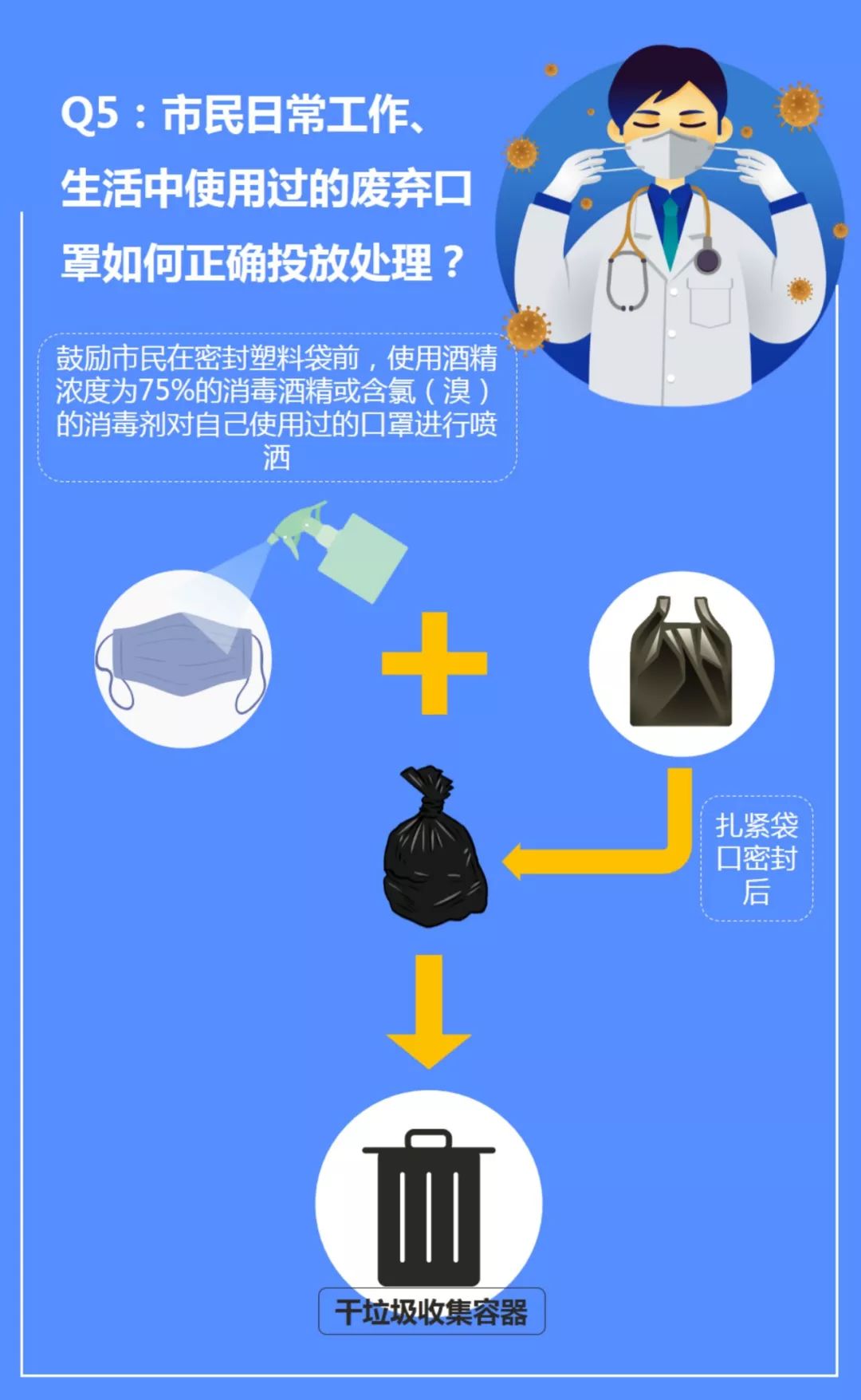 所以,為了減少作業(yè)人員和公眾的衛(wèi)生風險,請將疫情期間日常產(chǎn)生廢棄的口罩使用塑料袋密封后,作為干垃圾進行投放。