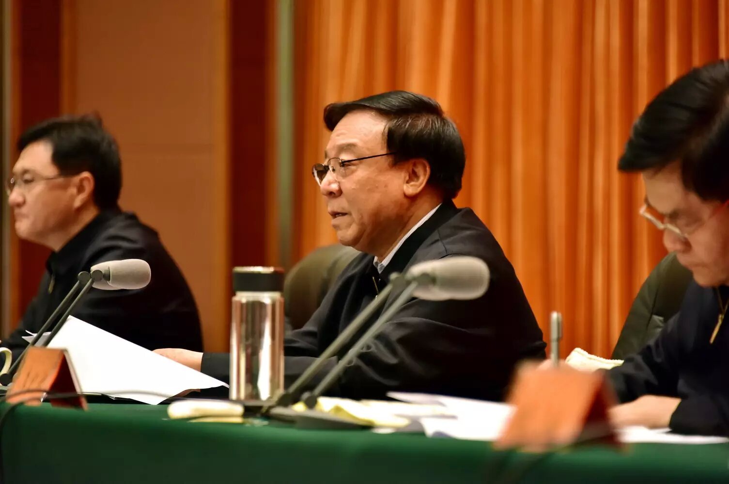 11月12日上午,中央第一環(huán)境保護督察組督察內(nèi)蒙古自治區(qū)情況反饋會上,督察組組長、全國人大環(huán)資委主任委員陸浩。攝影/章軻