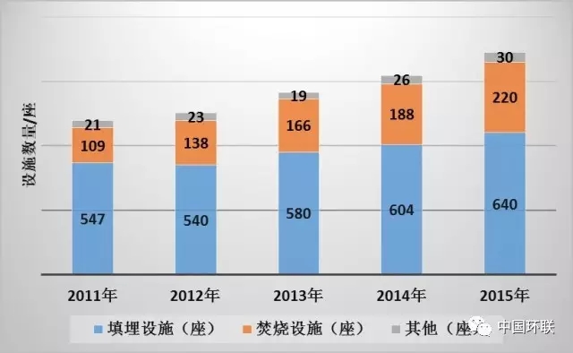 “十二五”期間我國城市生活垃圾無害化處理設(shè)施數(shù)量