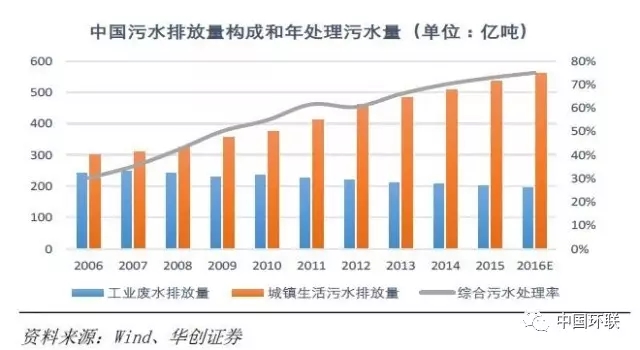 我國污水排放量構(gòu)成和年處理污水量