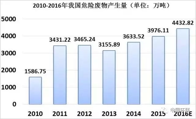 2016年,危廢真正實現(xiàn)集中處置的比例估計不到35%;2017年,危廢產(chǎn)生量預計超過6000萬噸,危廢處理市場挑戰(zhàn)和機遇并存。