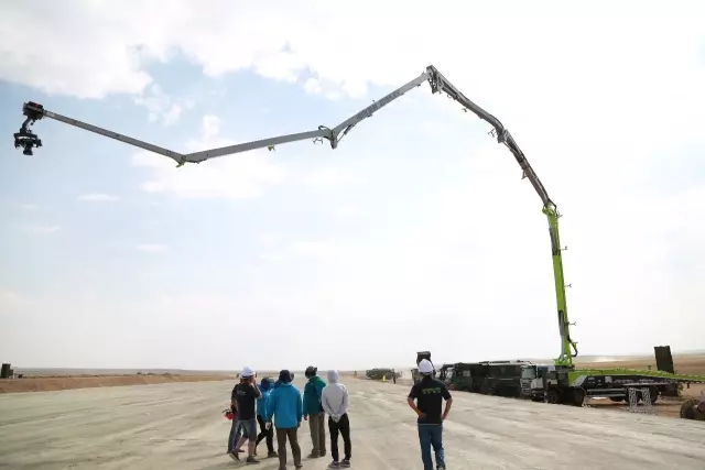 作為此次全球直播任務唯一大型裝備專供企業(yè),中聯(lián)重科共調(diào)派了95噸及以上的大噸位汽車起重機,4.0泵車,消防云梯車等10余臺高端設備助力央視拍攝。據(jù)中聯(lián)重科該項目技術負責人趙建陽介紹,與以往的閱兵儀式不同,此次沙場閱兵地處塞北大漠之中,光照強烈,常年風沙大,對設備和現(xiàn)場工作人員而言都是極大的考驗。