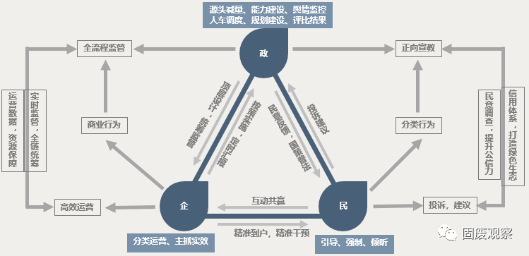 當(dāng)前,政、企、民三方各司其職,共同推進(jìn)垃圾分類。政府層面聚焦頂層規(guī)劃,企業(yè)著力于高效運(yùn)營(yíng),居民端發(fā)動(dòng)全民參與。聯(lián)運(yùn)環(huán)境從企業(yè)角度分析了在此情況下,如何在政企民協(xié)同發(fā)展中嵌入信息化系統(tǒng),打造信息化閉環(huán)。