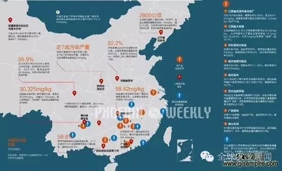 (中國(guó)大米污染不完全分布圖)