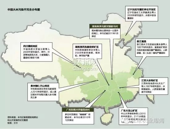 財(cái)新網(wǎng)記者根據(jù)實(shí)地探訪和公開(kāi)發(fā)表的論文,整理出了一份《中國(guó)大米污染不完全分布圖》。該分布圖顯示,遼寧、湖南、浙江、江西、四川、貴州、廣東、廣西等省份的部分地區(qū),不同程度地存在重金屬污染問(wèn)題,其中絕大多數(shù)都存在鎘污染,并且以廠礦地區(qū)為主。